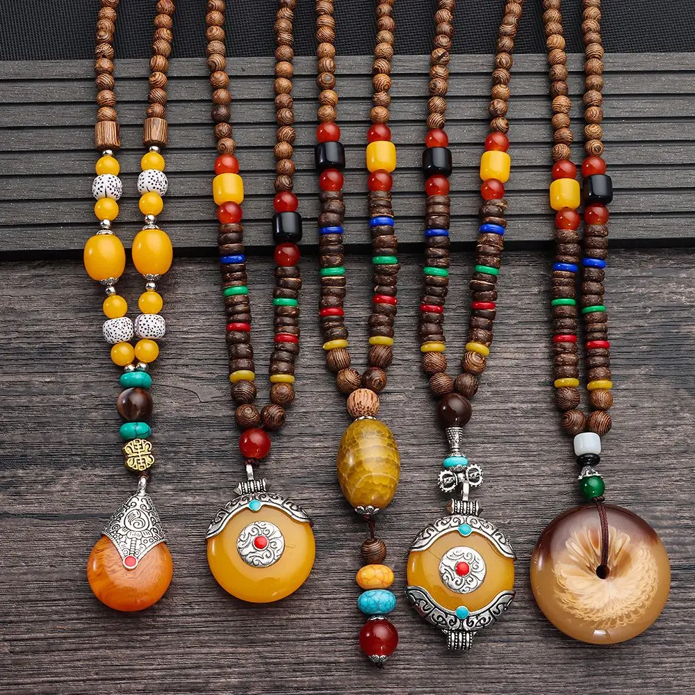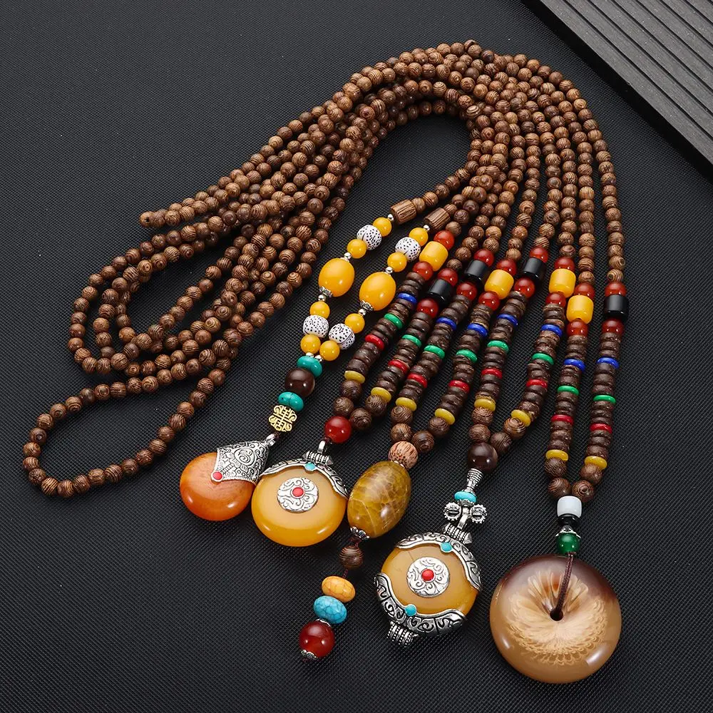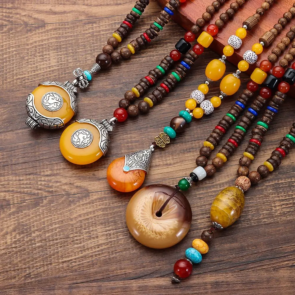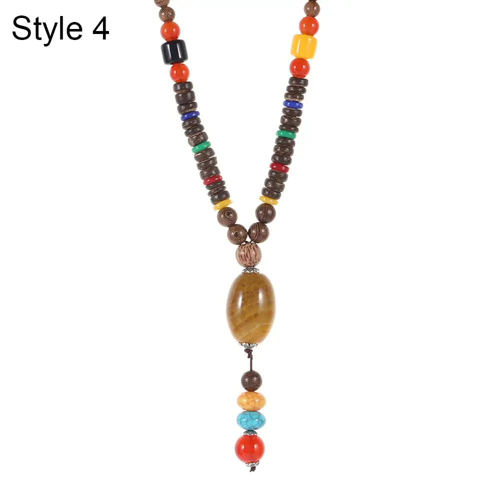 Boho Wooden Beaded Necklace Long Sweater Dress Handmade Pendant Chain Tassel Fashion Bohemian Necklace Jewelry Women