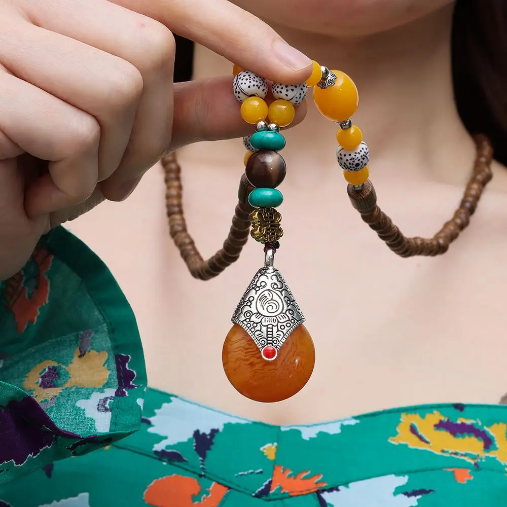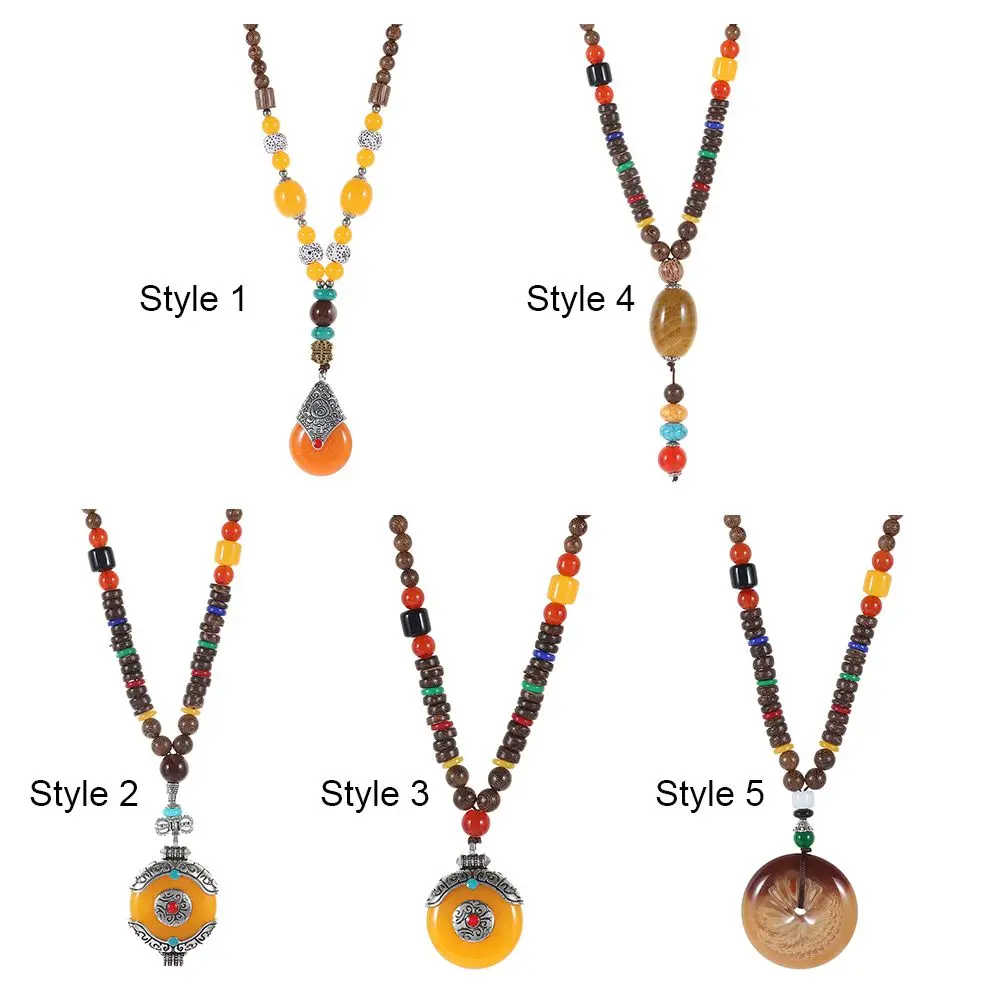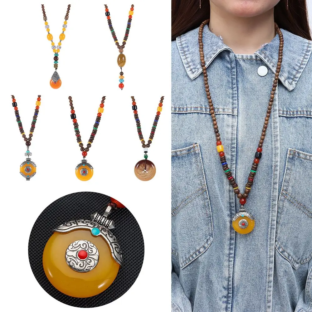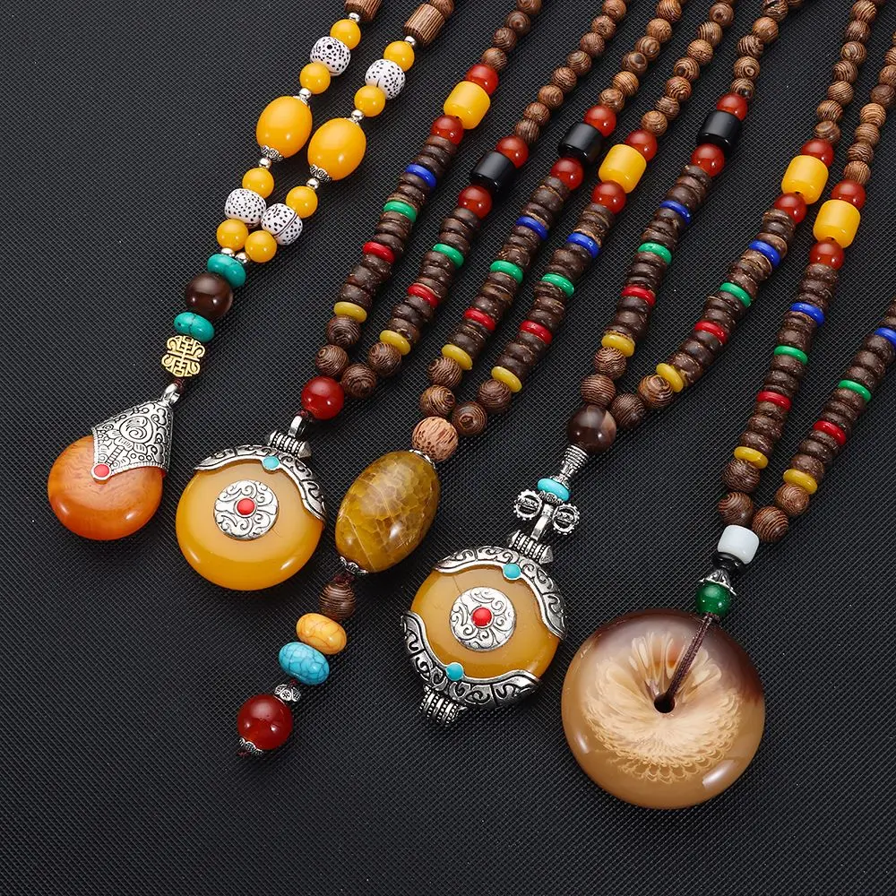Boho Wooden Beaded Necklace Long Sweater Dress Handmade Pendant Chain Tassel Fashion Bohemian Necklace Jewelry Women